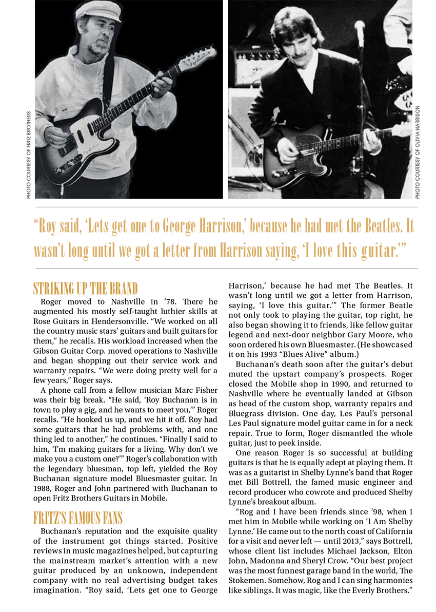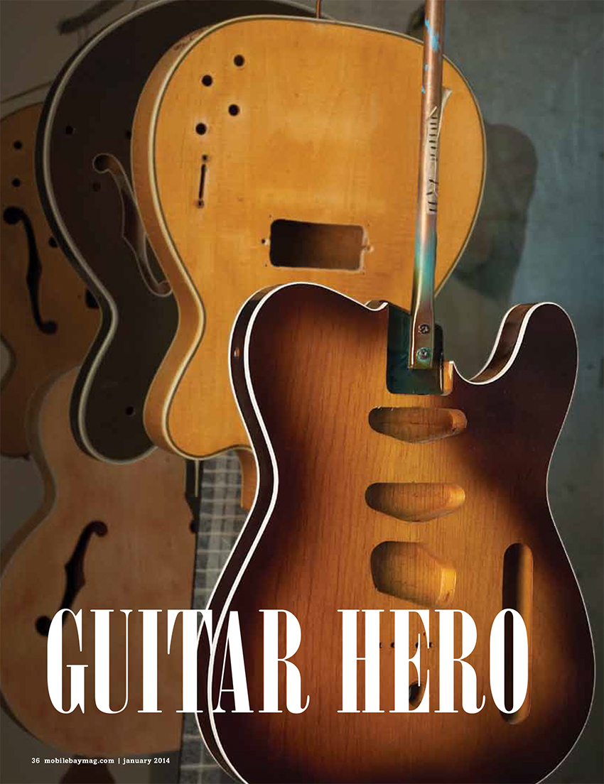 Guitar Hero: The sweet sounds of Roger Fritz’s handcrafted axes have attracted quite the celebrity following, from George Harrison to Randy Jackson. Mobile Bay Magazine, January 2014. Text and photos by Adrian Hoff |
