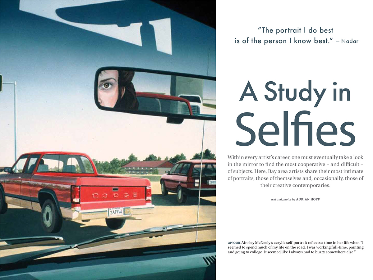 A Study in Selfies Within every artist’s career, one must eventually take a look in the mirror to find the most cooperative – and difficult – of subjects. Mobile Bay Magazine, September 2013. Text and photos by Adrian Hoff |